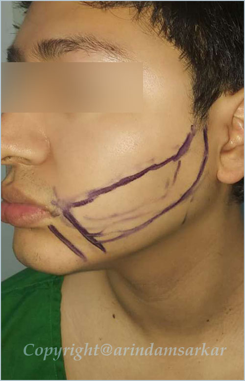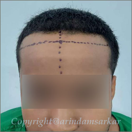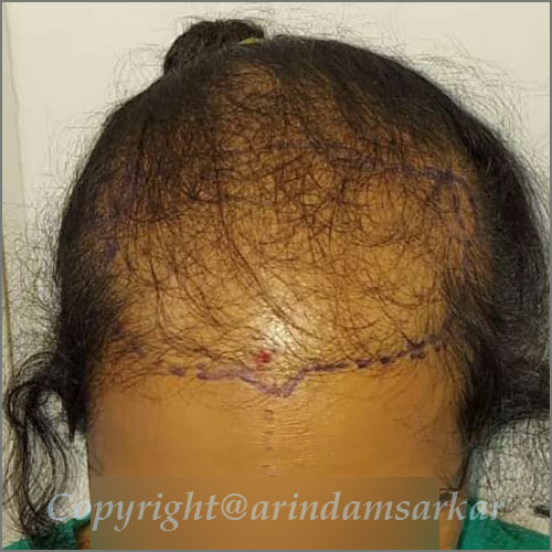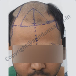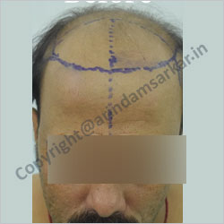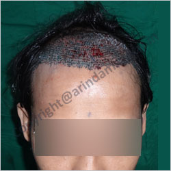 Patients' own hair is taken from back of scalp and transplanted over bald areas by follicular unit technique. This hair is permanent, grows normally, needs hair cut & shampooing. Also done over moustache, beard and eye brows. This is one of the commonest cosmetic surgeries performed. Baldness is usually hereditary and may be of male or female type. It can be done in any age & sex in an adult person. Transplanted hair is natural hair, which grows normally, needs hair cut, shampooing, can be transplanted in limited hair lost areas of eyebrows, moustache & beard also. This is a 5 to 6 hours surgery, done under local anaesthesia. Patient can move around, eat, drink & enjoy music and movies during hair transplant surgery. Operation is done under local anaesthesia. Donar hair is taken from posterior part of scalp & area is closed directly. The suter line becomes indistinct later. In FUT technique the area of scalp with hair is divided into small pieces called pluks (or follicles), each containing 1 to 4 hairs . They are transplanted over bald area. This is called Minimicrograph Technique & Follicular Unit Transfer Technique (FUT). The area is closed directly by a special technique called trichophytic technique. There is another technique called follicular unit extraction (FUE) in which hair roots are collected by making small punches which heals within few days. there is no linear scar.